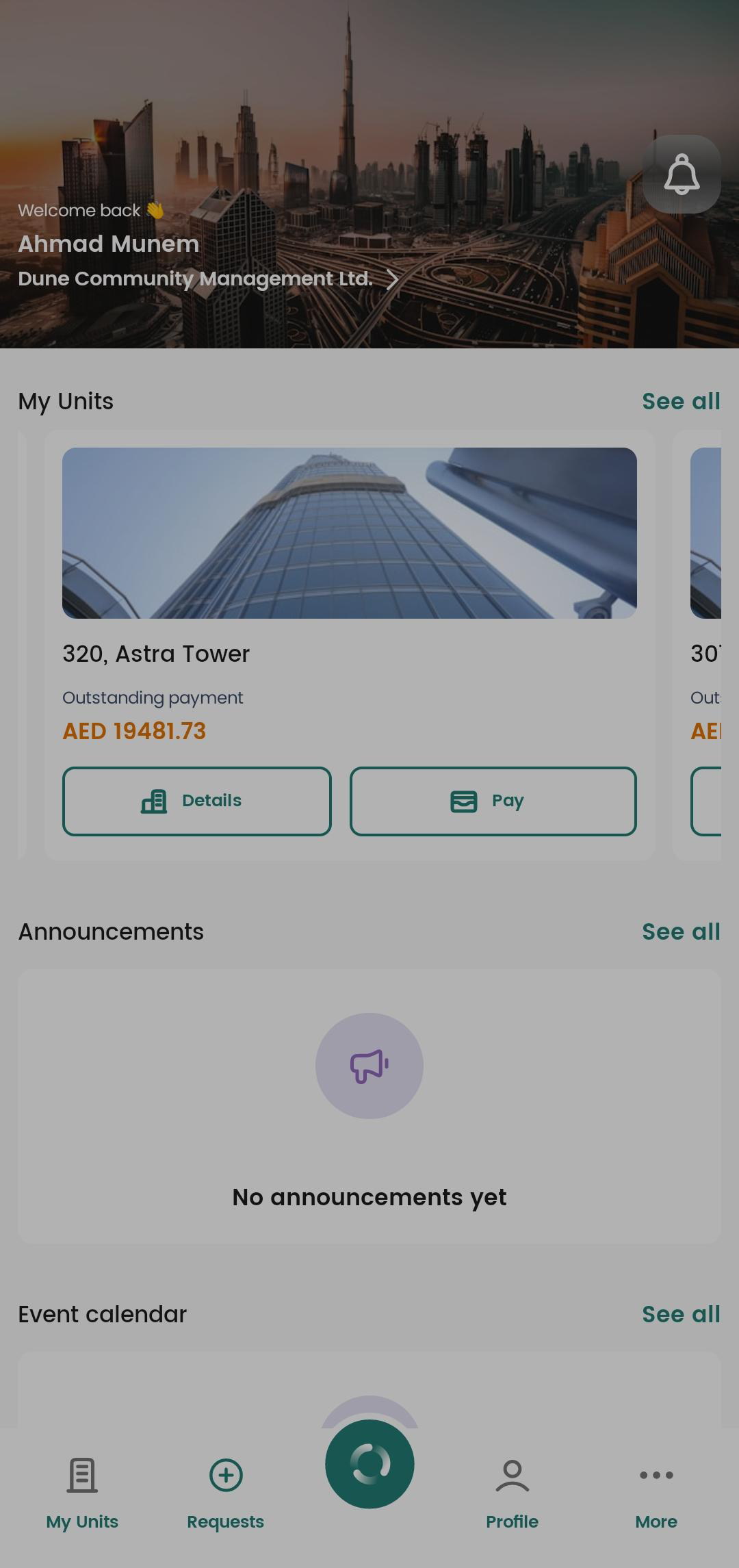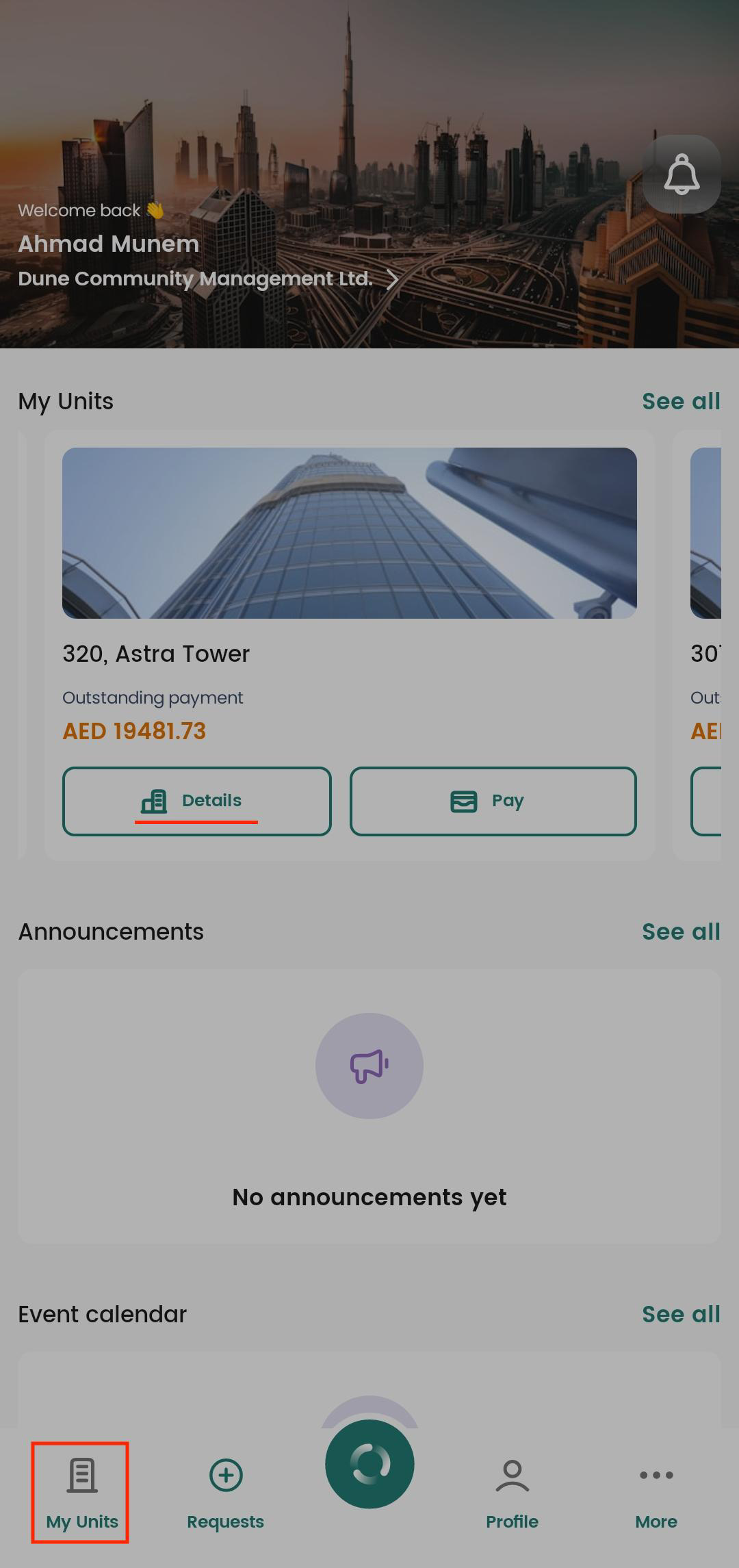 Alternatively, tap My Units (from the navigation menu at the bottom) to view the service charge.