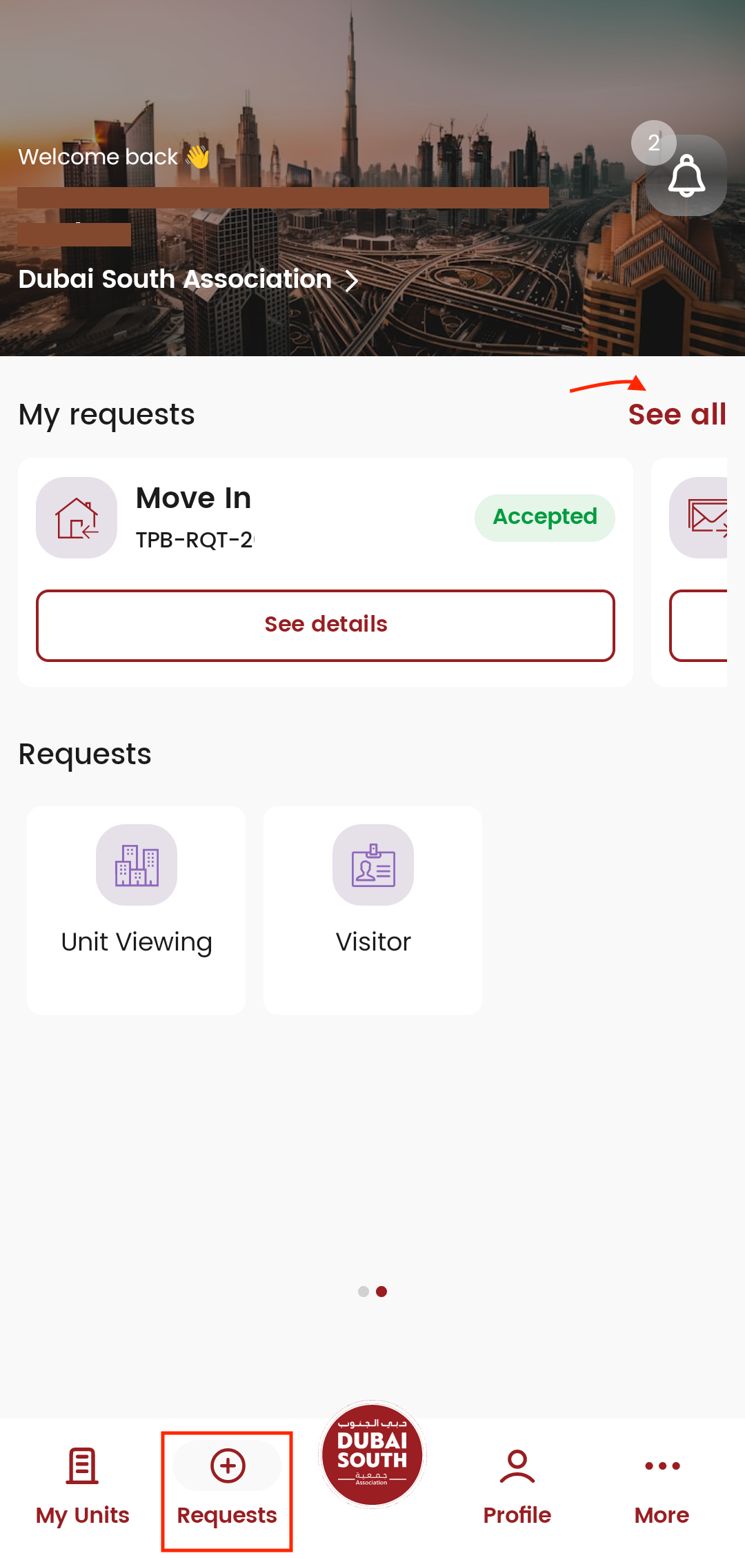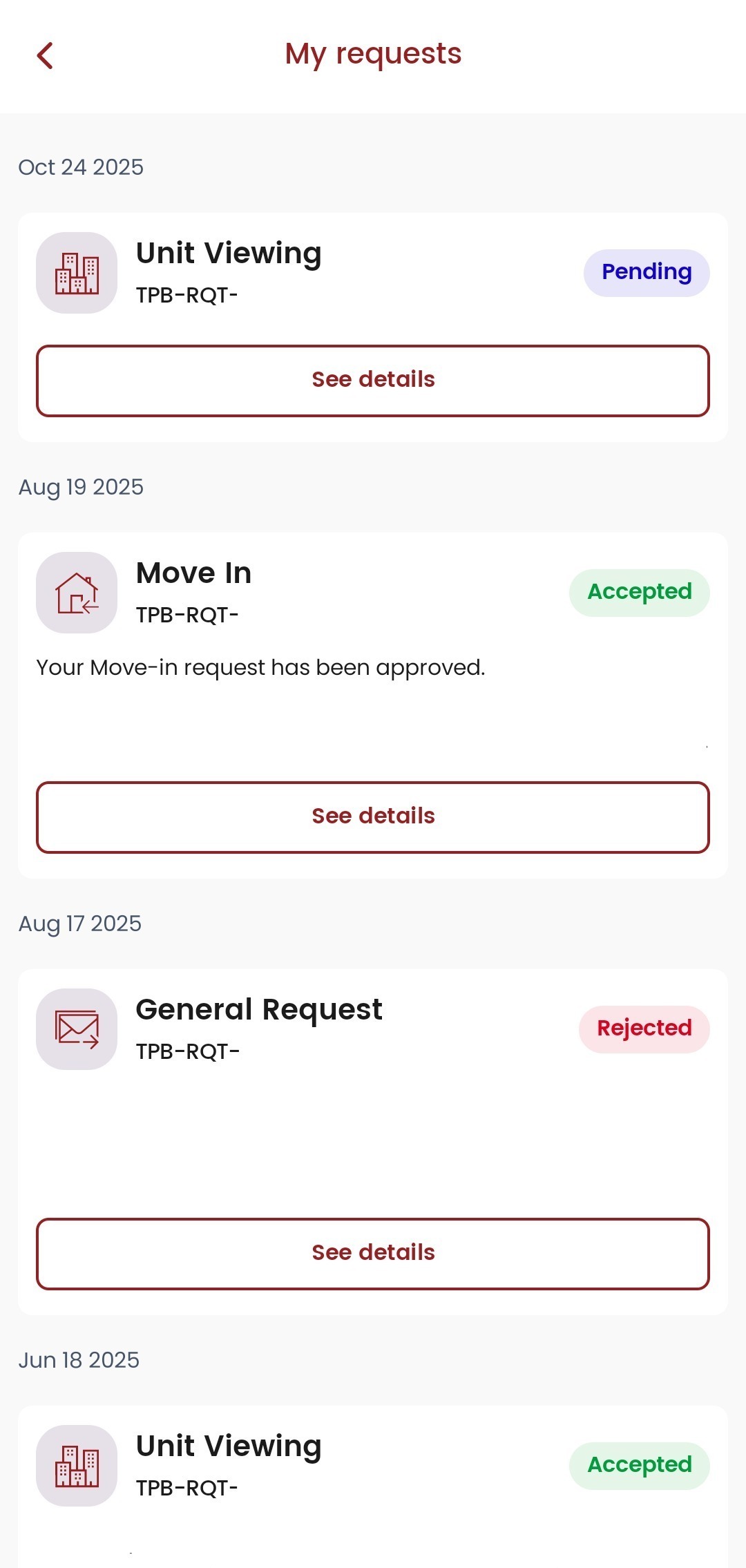 After your Unit Viewing request is successfully submitted, you will be able to track your recently submitted request under My Requests.