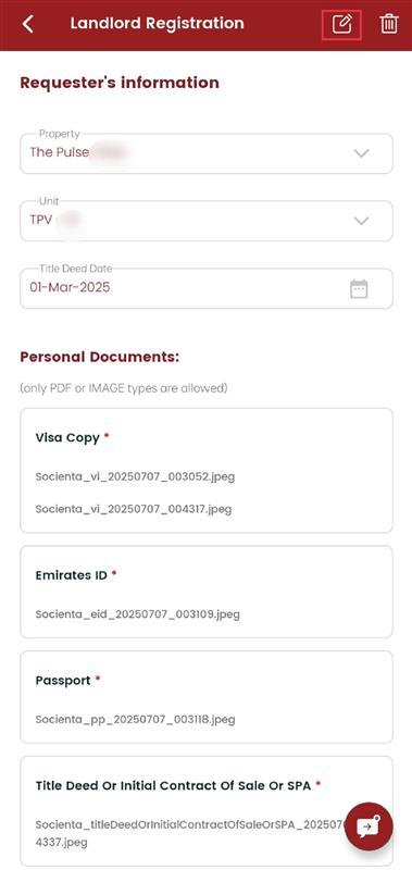 Now the request is open for you as an edit view, and you can edit the requested information and update the requested documents then click on Save.