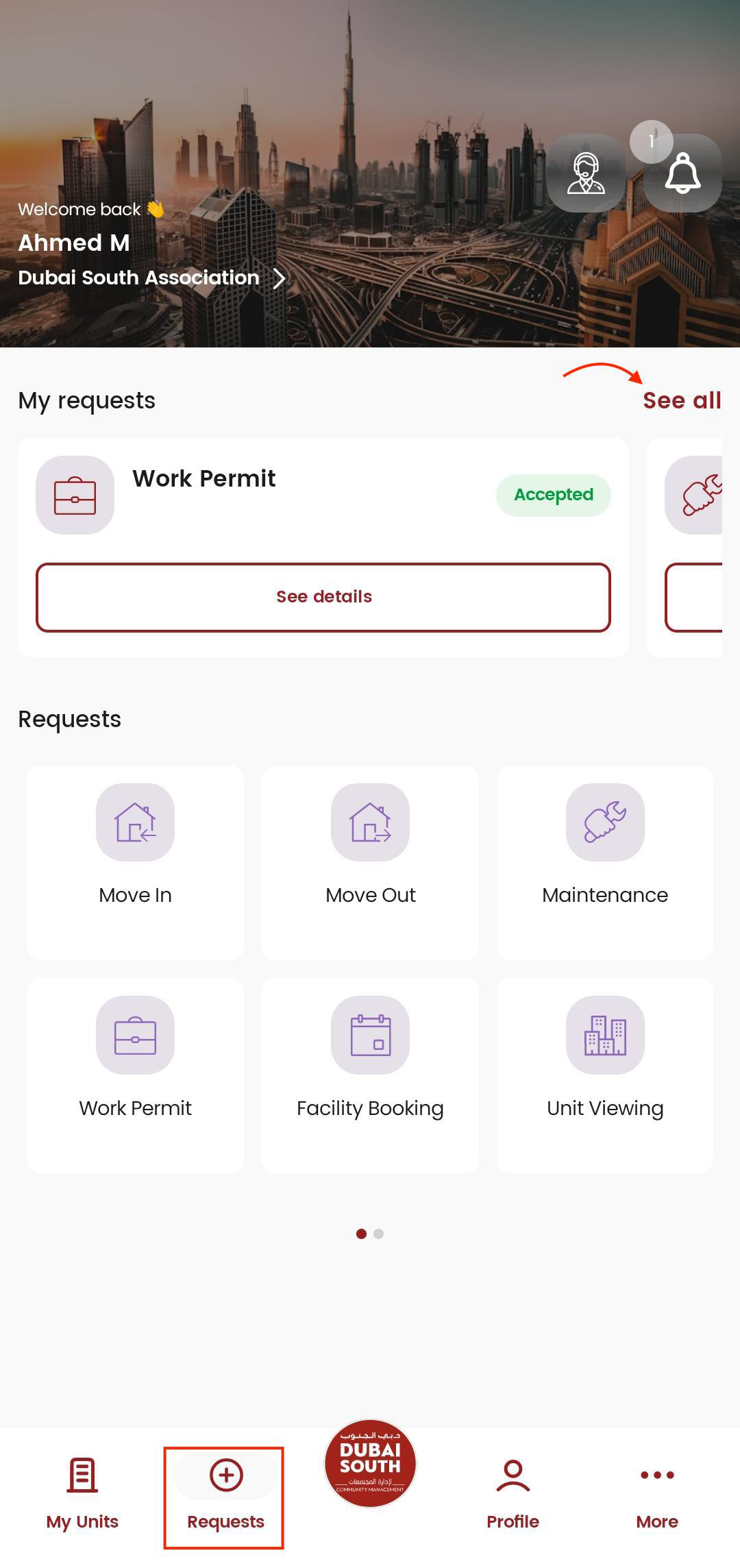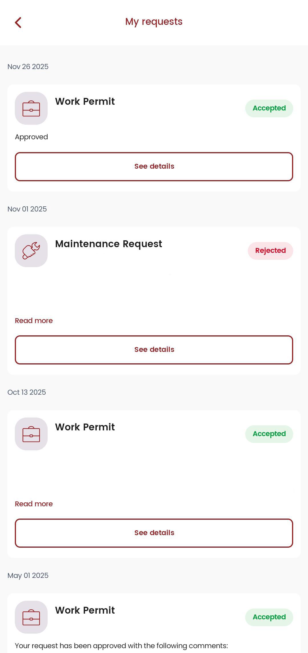 View the list of all submitted requests with their current status (Pending, Approved, or Declined).