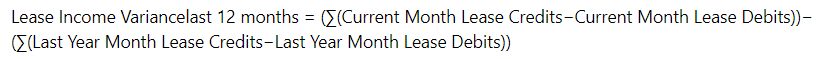 "Lease Income month over same month (Last 12 months)" is a crucial metric used to analyze the performance of lease income over some time by comparing the income from each month to the same month in the previous year. This metric helps identify trends, fluctuations, and overall growth or decline in lease income, providing valuable insights for property management and financial planning.